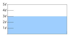 In grade 2, Japanese students investigate how many liters of water fit in various containers. (The shaded area represents the water.)