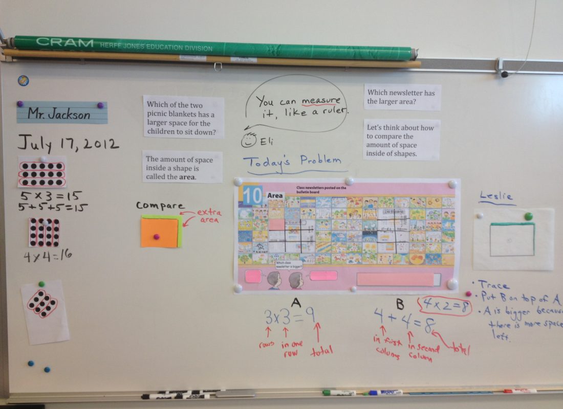 - When you pose a new type of problem to students, ask them what they notice about it or what they already know that might help them solve it. You can see an example of this in the classroom here: