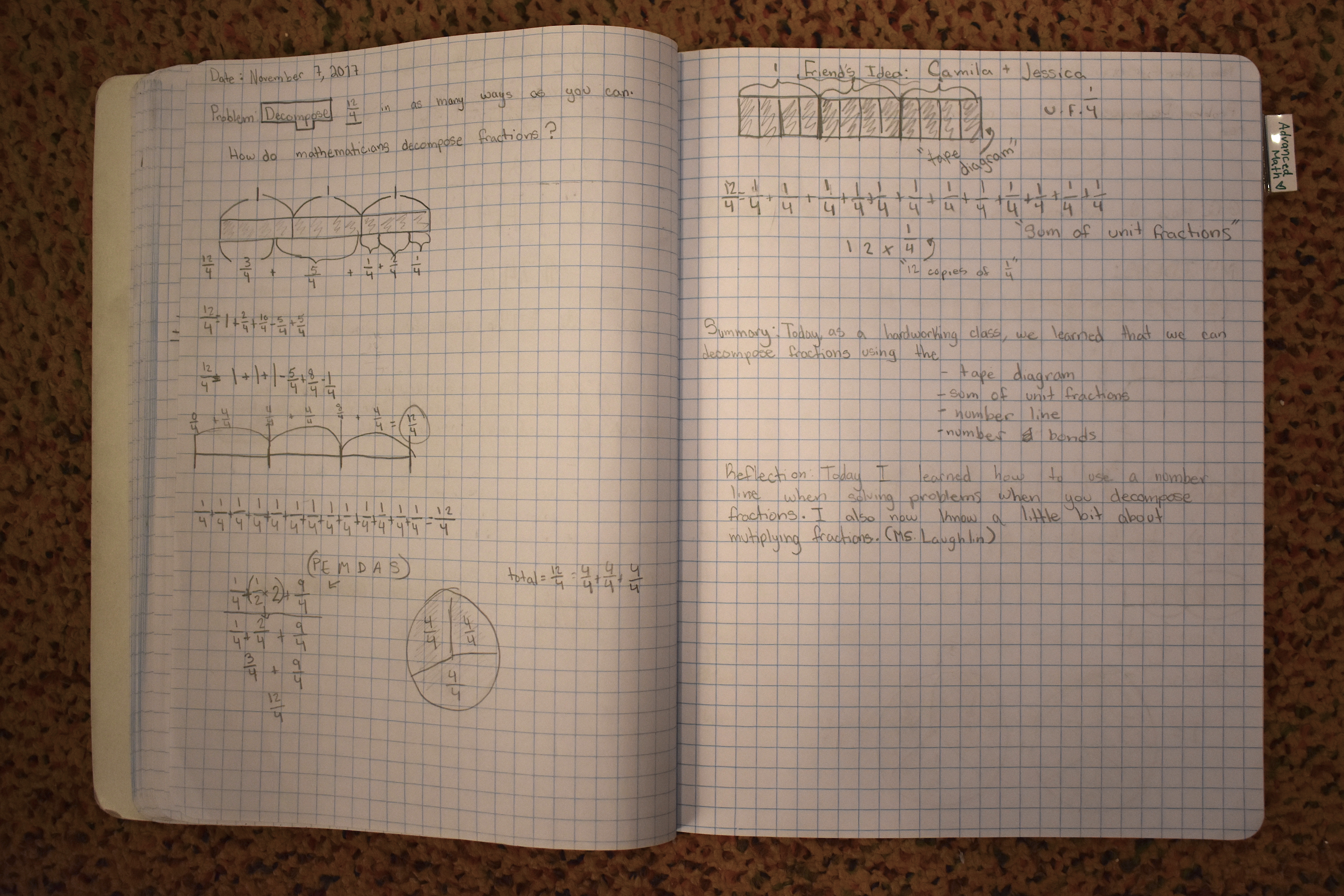 Examine student journal entries and read through any notes you jotted down as you were working to build students’ use of models, diagrams, and expressions. Reflection/Discussion questions:- What do you notice in students’ journals related to their use of models, diagrams, and expressions? For example, what do you notice about the frequency and quality of these mathematical features and the contexts that elicit them?