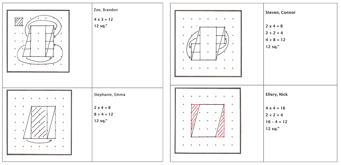 In the first lesson, Dr. Takahashi begins by asking students to make a 4 X 5 rectangle on a geoboard and to copy the shape onto paper (dotted to look like a geoboard). Before watching this video segment, discuss or reflect on: