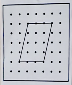 Make the following shape on a geoboard (or dot paper) and find the area. (From “Can You Find the Area?” series of lessons on video by Akihiko Takahashi.)